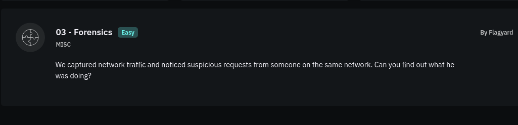 The description hints at “suspicious requests,” and often in CTFs, data can be hidden in fields like IP addresses.