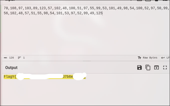 Converting the sequence of numbers from decimal to ASCII revealed the flag!